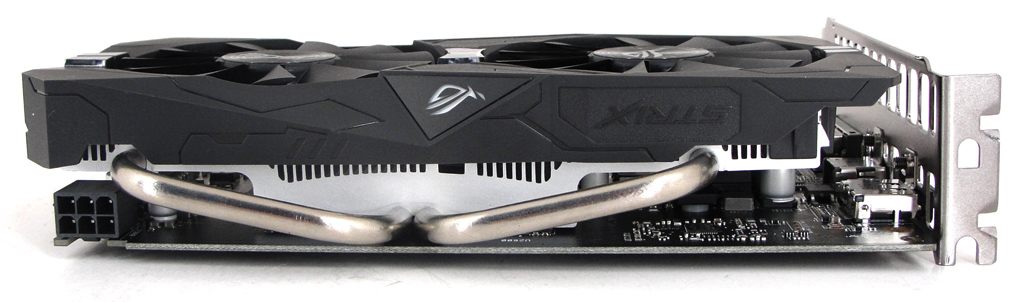 Die ASUS-spezifische Kühlung der Grafikkarte von der Seite.