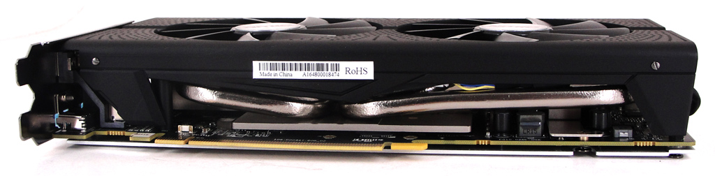Um die übertaktete GPU effektiv kühlen zu können, setzt der Hersteller nicht auf die Kühlung der Referenzkarte, sondern auf ein eigenes Design. Die Dual-Slot-Kühlung setzt auf einen Alu-Radiator mit Kupfer-Kern sowie drei Heatpipes, die für den Abtransport der Wärme vom Kern verantwortlich sind. Zwei axiale 95-mm-Lüfter sorgen für Frischluftzufuhr und stehen still, sobald die Karte im Idle bzw. 2D-Modus unterwegs ist. Über das Tool TriXX 3.0 hat der Nutzer außerdem die Möglichkeit überprüfen zu lassen, ob die Lüfter noch einwandfrei funktionieren. Sollte ein Defekt vorliegen, kann man über TriXX direkt neue Lüfter bei Sapphire ordern – für den Tausch ist kein Einschicken der Karte notwendig. Auf der Rückseite wird das Kühlkonzept durch eine großflächige Backplate ergänzt.