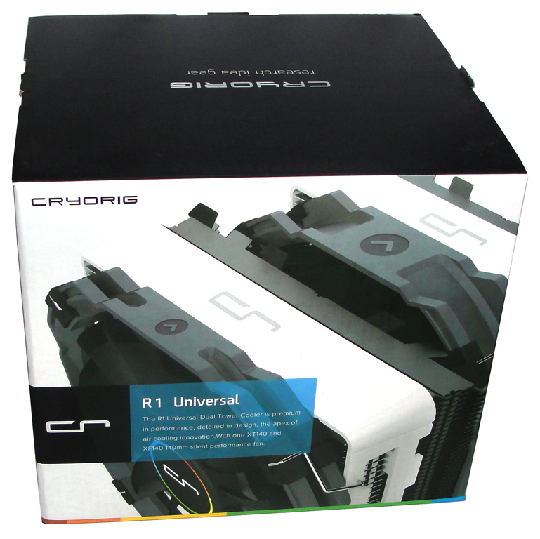 Der R1 Universal zählt als Doppel-Tower zu den Flaggschiffen von Cryorig und liegt auch preislich im gehobenen Segment. Die Universal-Ausführung zielt dabei voll auf die Flexibilität bei der Montage ab, da trotz der großen Abmessungen keine Probleme mit z.B. hohen RAM-Heatspreadern entstehen sollen – mehr dazu in den folgenden Abschnitten. Der Verpackungsinhalt ist durchaus üppig ausgefallen und beinhaltet den CPU-Kühler samt zweier passender 140-mm-Lüfter, verschiedene Backplates und Befestigungsmaterial sowie Werkzeug. Außerdem mit dabei ist eine Tube CP7-Wärmeleitpaste (CP = CRYO-Paste), damit man direkt mit der Montage des Kühlers beginnen kann. Ebenso im Karton enthalten ist ein Y-Kabel für den Anschluss der 4-Pin-PWM-Lüfter. Hier der gesamte Lieferumfang des Probanden noch einmal im Überblick:
