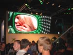 Ohnehin hätte wohl ein Großteil der Besucher sowieso nichts von Doom III und Co. gehabt, da entsprechende Bereiche auf verschiedenen Ständen abgegrenzt wurden und nur für Personen mit einem Mindestalter zugänglich waren. Bevor man also einen solchen Raum betreten durfte, musste man sich ein Armbändchen holen (waren in den Hallen erhältlich). Insgesamt gab es drei verschiedene Bänder (12, 16 oder 18 Jahre alt). Somit konnte man sich Zugang zu den abgesperrten Bereichen verschaffen. Ein Sechszehnjähriger hatte somit absolut keine Chance einen Blick auf ein Spiel zu werfen, welches erst ab einem Alter von 18 erhältlich sein wird. Passend hierzu war auch das Jugendamt Leipzig auf der Messe mit einem Stand vertreten. Im Großen und Ganzen waren wir vom Großteil der gezeigten Spiele nicht sehr angetan, jedoch waren auch einige Leckerbissen dabei, die ein Warten auf jeden Fall wert sind. Als kleines Highlight konnte man auch das Computerspiele-Museum bezeichnen, in welchem man das erste in Deutschland indizierte PC-Game (Flugsimulator in Overkill-Manier), das erste kommerzielle Spiel und vieles mehr bestaunen und auch selbst zocken konnte. Abschließend hier auch noch ein paar Bilder des Xbox Standes mit seiner gigantischen Laser-Wand (etwa 40 m²)...