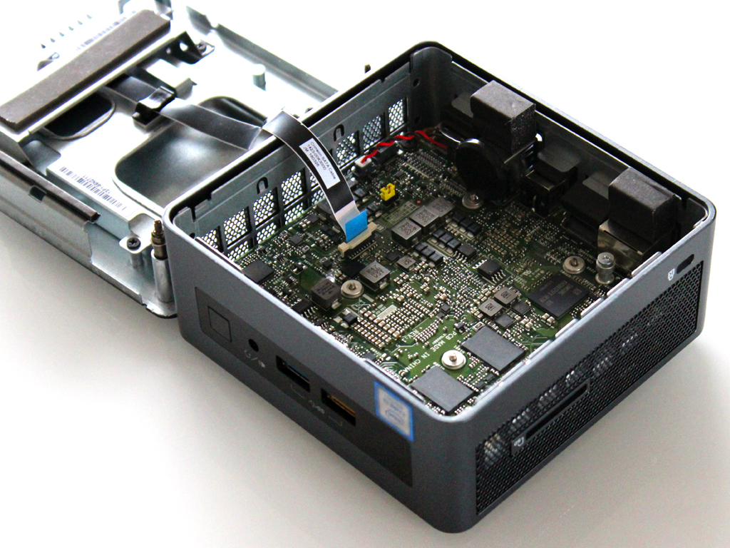 Das NUC8i3CYSM ist etwas höher als einige seiner Geschwister und bietet daher Bauraum für 2,5 Zoll Drives.