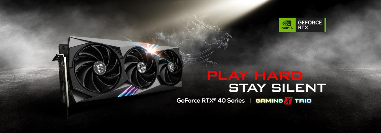 Die neue GAMING TRIO-Serie ist mit einem Dual-BIOS ausgestattet, das ein einfaches Umschalten zwischen Silent- und Gaming-Modus ermöglicht. Eine Backplate aus gebürstetem Metall mit Flow-Through-Design verstärkt die Grafikkarte und sorgt durch den Einsatz von Wärmeleitpads gleichzeitig für passive Kühlung. Die Grafikkarte ist mit Mysthic Light ausgestattet und leuchtet dank der Synchronisierungsfunktionen passend zum Gesamtbild des Gaming-PCs. Die RTX 4090-basierten MSI Modelle der GAMING TRIO-Karten belegen 3,75 Steckplätze und die RTX 4080-basierten Modelle belegen 3 bis 3,25.