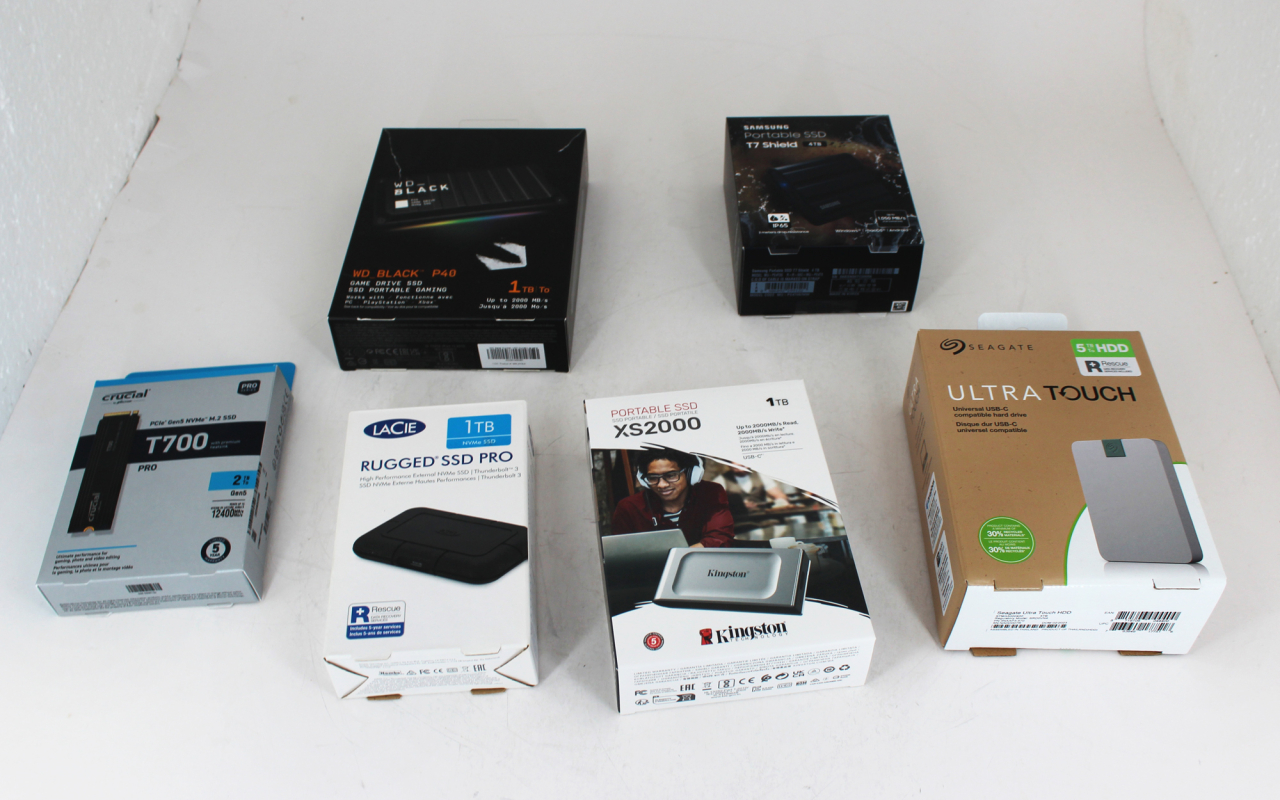 In unserem Testlab tummeln sich derzeit einige externe Festplatten und SSDs, über die wir bereits in Kürze berichten werden. Zu den Testkandidaten gehören unter anderem die folgenden Drives: